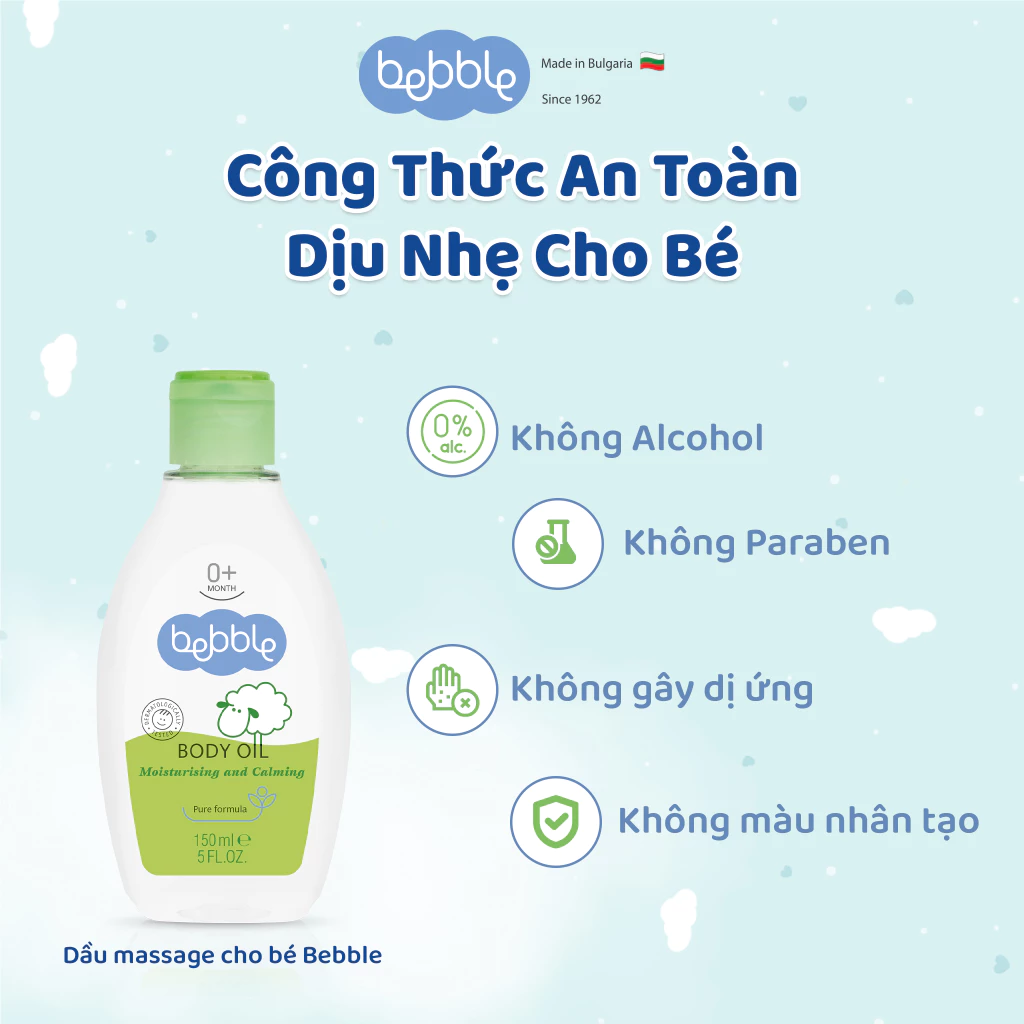 Dầu massage cho bé Bebble Body Oil dùng cho bé từ 0 tháng tuổi - Dưỡng ẩm, dịu da 150ml
