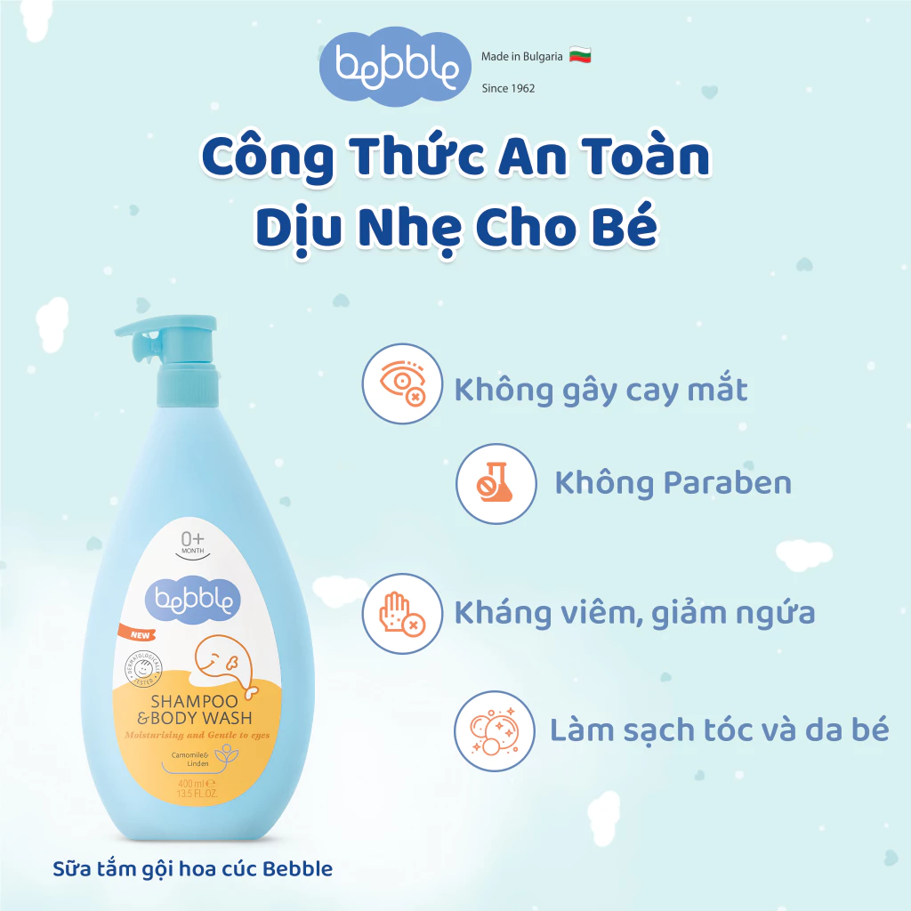 Sữa tắm gội Bebble hoa cúc, an toàn dịu nhẹ, 400ml
