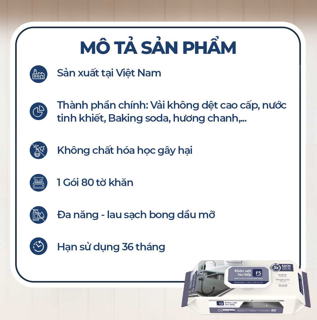 THÙNG 12 gói khăn ướt lau bếp F5 Clean 80 tờ sạch bóng mọi bề mặt đa năng mềm mại, thân thiện, thành phần baking soda an toàn với da