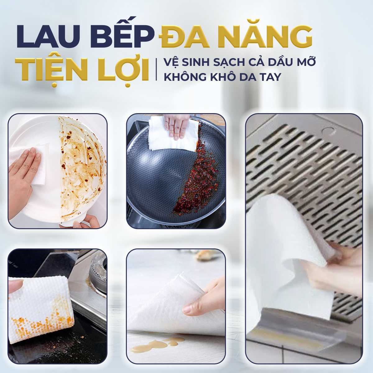 Mở nắp, bóc decal, rút từng tờ khăn để dùng. Lau trực tiếp trên bề mặt bếp, vật dụng và để khô tự nhiên. Sau khi sử dụng đóng nắp lại để tránh vi khuẩn và giữ ẩm.